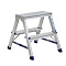 Двухсторонняя алюминиевая стремянка представляет собой складную модель с массивной площадкой, противоскользящими ступенями и широким устойчивым основанием. Способна выдержать вес до 150 кг.