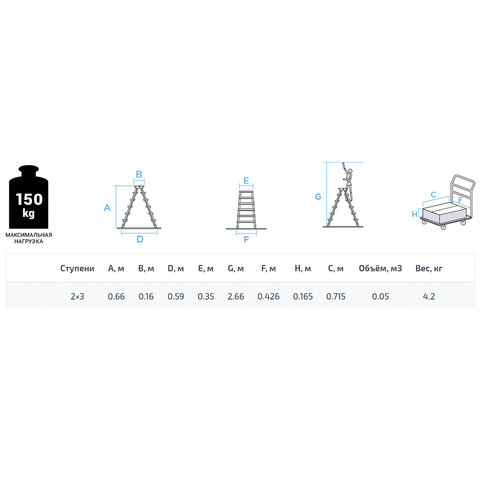 Стремянка имеет повышенную прочность и надёжность при небольшом весе изделия. Обеспечивает высокий уровень комфорта.
