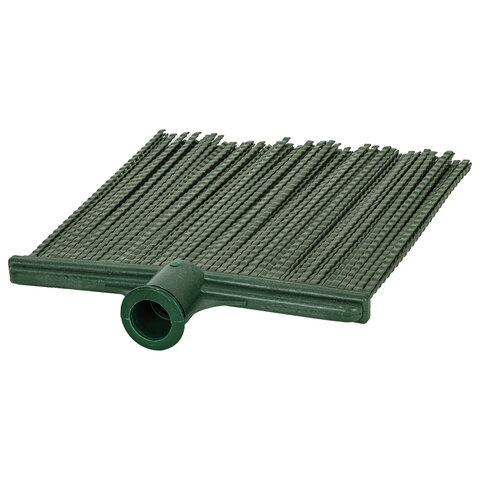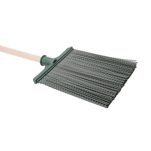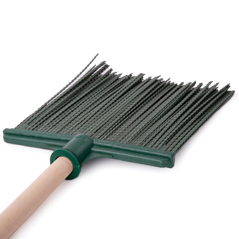 Плоское строение метлы позволяет производить подметание сразу всей шириной захвата в 22 см. Оснащена полипропиленовыми прутьями толщиной 0,2 мм, поэтому износоустойчива и легко моется. Поставляется с березовым черенком длиной 120 см. Размер рабочей части - 25х22 см. Вес - 0,9 кг.