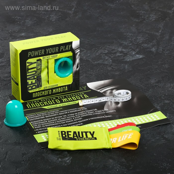 Набор Power your play: фитнес-резинки 3 шт., чехол, измерительная лента, массажная банка, календарь тренировок
