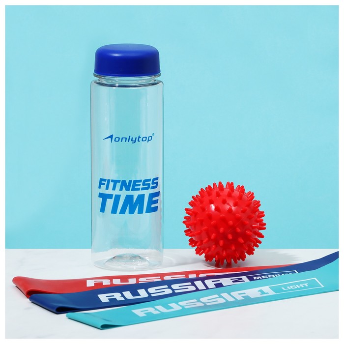 Набор для фитнеса ONLYTOP «Россия»: 3 фитнес-резинки, бутылка для воды, массажный мяч