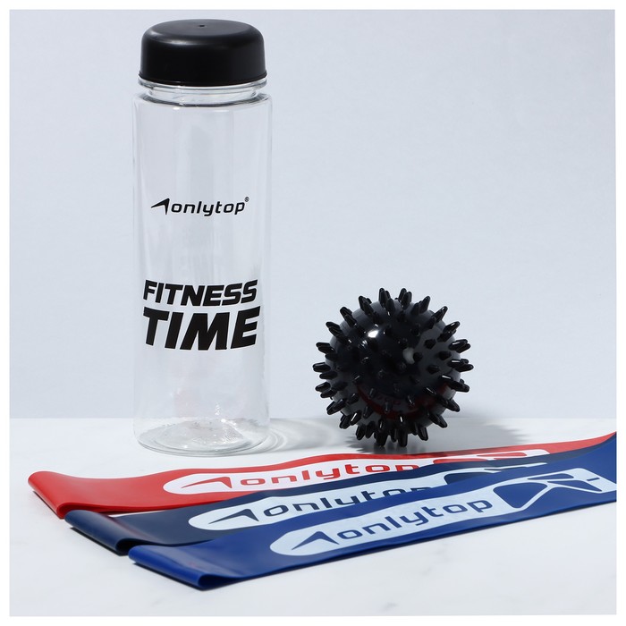 Набор для фитнеса ONLYTOP Dreamfit: 3 фитнес-резинки, бутылка для воды, массажный мяч