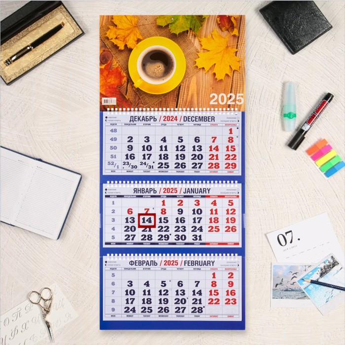 Календарь квартальный, трио "Кофе - 2" 2025, 69 х 31 см