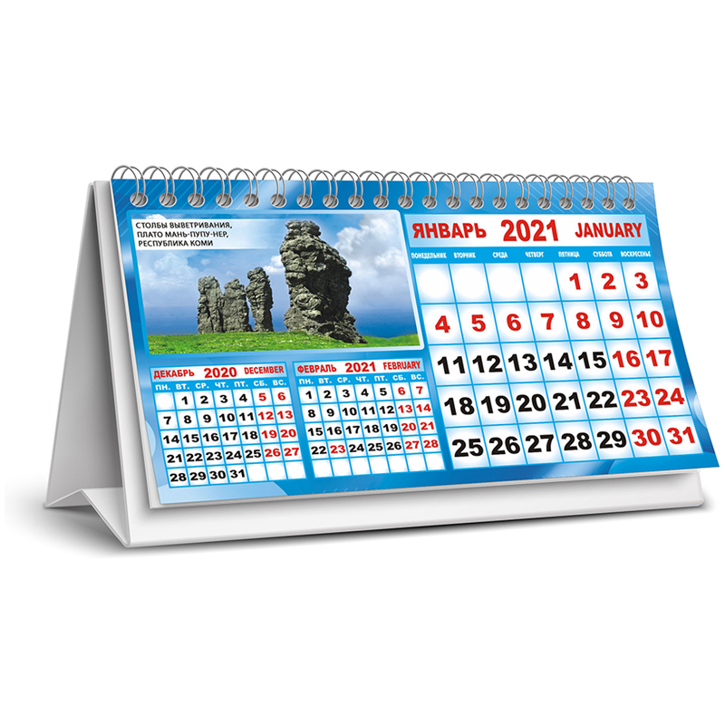 Настольный календарь-домик на 2021 год станет незаменимым помощником в планировании рабочего дня.<br/>Размер календаря – 196×132 мм. 7 листов. Календарная сетка на 3 месяца.<br/>Блок:<br/>• Материал – мелованная бумага, 90 г/м2.<br/>• Цветность – полноцветная печать.<br/>• Кол-во гребней – 1.<br/>Подложка – однотонный мелованный картон.