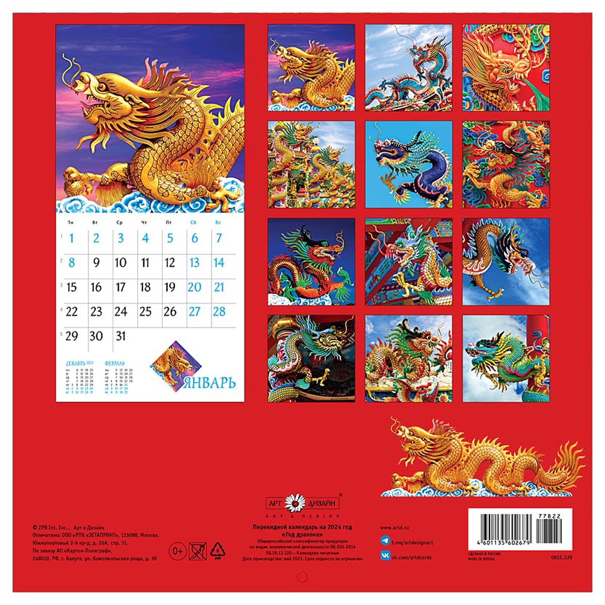 Календарь карманный Горчаков ГК "Символ года Дракон", ассорти, 12 дизайнов, 2024г.
