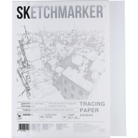 Калька SKETCHMARKER изготавливается из высококачественного сырья, обладает высокой прочностью, но при этом почти прозрачна. Калька предназначена для рисования и черчения карандашами, ручками и чернилами. Подходит для печати на струйном и лазерном принтере