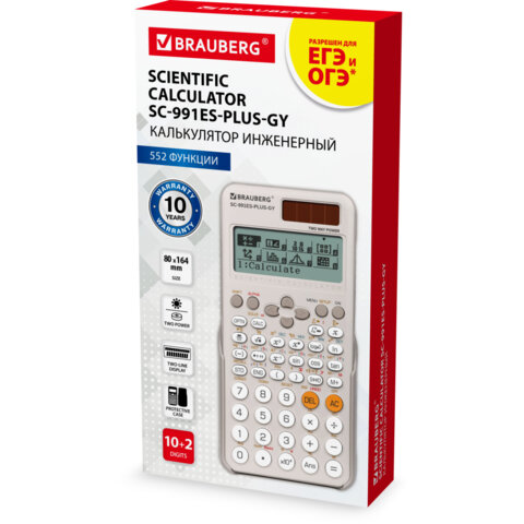 Непрограммируемый инженерный калькулятор BRAUBERG SC-991ES-PLUS-BK выполняет выполняет все основные вычисления, которые понадобятся школьникам на экзаменах и контрольных работах. Сертифицирован для использования на ЕГЭ и ОГЭ по физике, химии, географии.