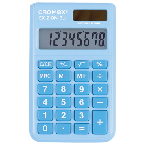 Калькулятор карманный CROMEX CX-210N-BU (96х62 мм), 8 разрядов, двойное питание, голубой, 273835