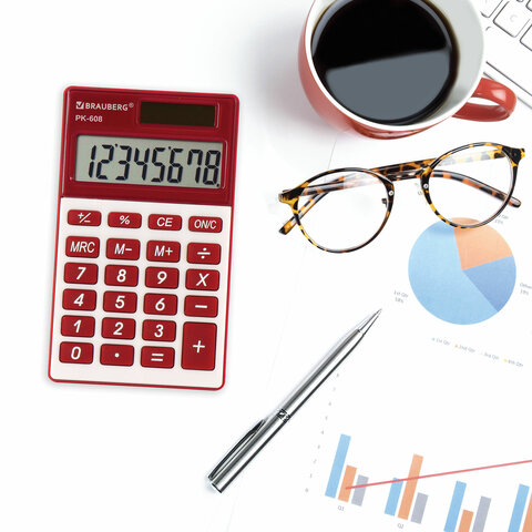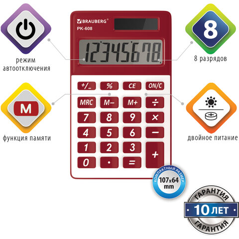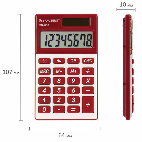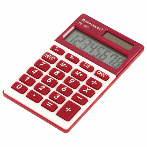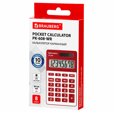 Карманный калькулятор BRAUBERG PK-608-WR - компактный, прочный и надежный. Его удобство оценят и взрослые и дети.