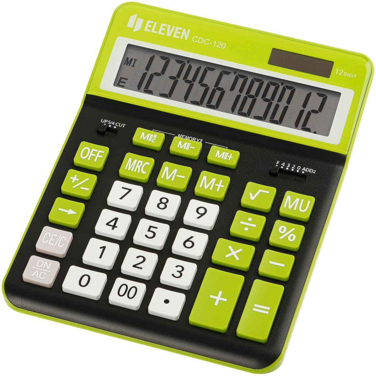 УЦЕНКА - Калькулятор настольный Eleven CDC-120-BK/GN, 12 разрядов, двойное питание, 155*206*38мм, черный/салатовый