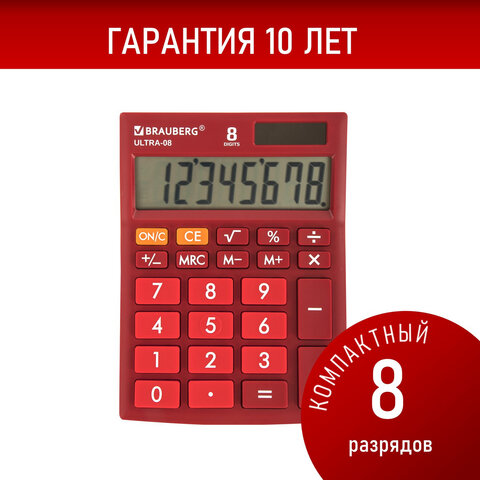 Настольный калькулятор BRAUBERG ULTRA-08-WR. Большой яркий дисплей, устойчивый корпус с прорезиненными ножками и крупная клавиатура с цветной дифференциацией позволяют работать эффективнее с максимальным комфортом.