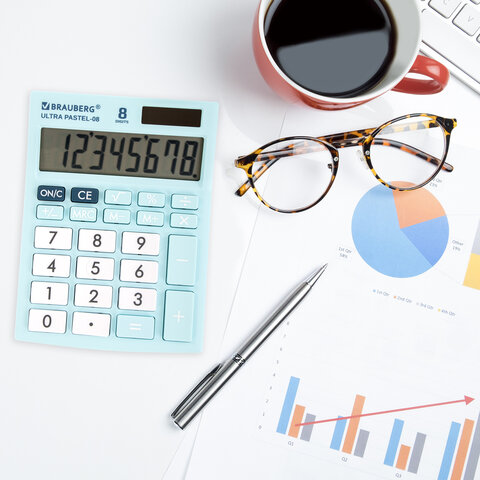 Настольный калькулятор BRAUBERG ULTRA PASTEL-08-LB. Большой яркий дисплей, устойчивый корпус с прорезиненными ножками и крупная клавиатура с цветной дифференциацией позволяют работать эффективнее.