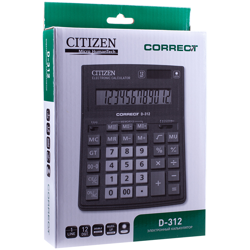 Бухгалтерский настольный калькулятор; 12-ти разрядный, квадратный корень, расчет наценки, вычисление процентов, двойная память, функция итогового суммирования, двойное питание