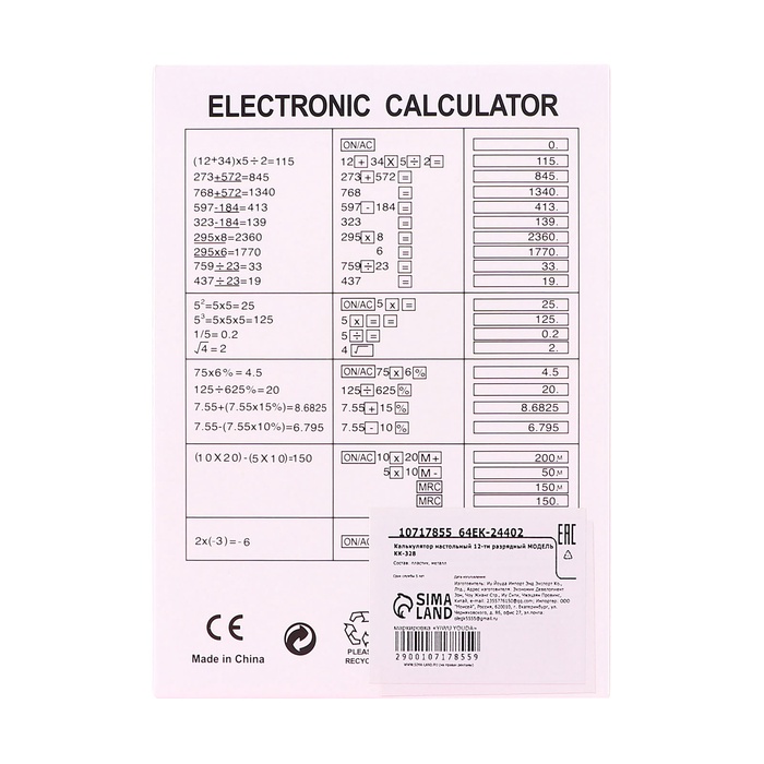 Калькулятор настольный 12-разрядов ErichKrause DC-2708-12 Classic, белый