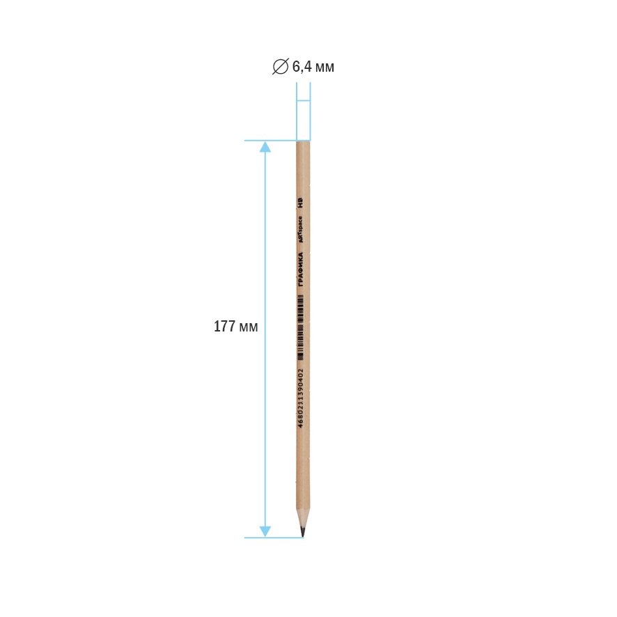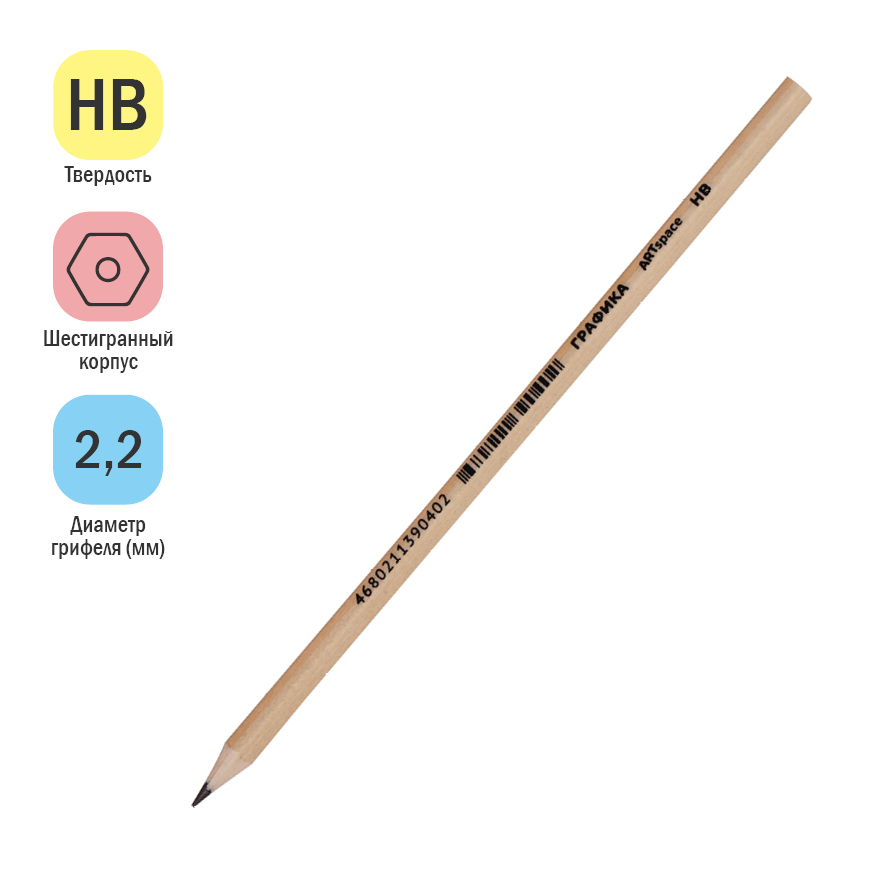 Чернографитный заточенный карандаш из натурального дерева. Отлично подходит для выполнения чертежных, технических, графических и художественных работ. Твердость HB (ТМ), шестигранная форма корпуса цвета натурального дерева. Упаковка в картонную коробку с европодвесом, есть штрих-код на корпусе.