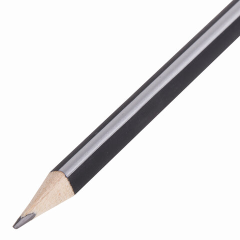Изготовлен из дерева высокого качества, оснащен ластиком. Имеет трехгранное сечение. Карандаш длиной 190 мм легко точится и не крошится. Обладает средней степенью твердости – HB. Диаметр грифеля - 2,05 мм. Выполнен в черном цвете с серыми деталями. Поставляется заточенным.