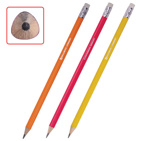 Изготовлены из высококачественной древесины, оснащены ластиком. Имеют трехгранное сечение. Карандаши длиной 190 мм легко точатся и не крошатся. Обладают средней степенью твердости – HB. Диаметр грифеля - 2,05 мм. Выполнены в трех цветах ассорти. Поставляются заточенными.