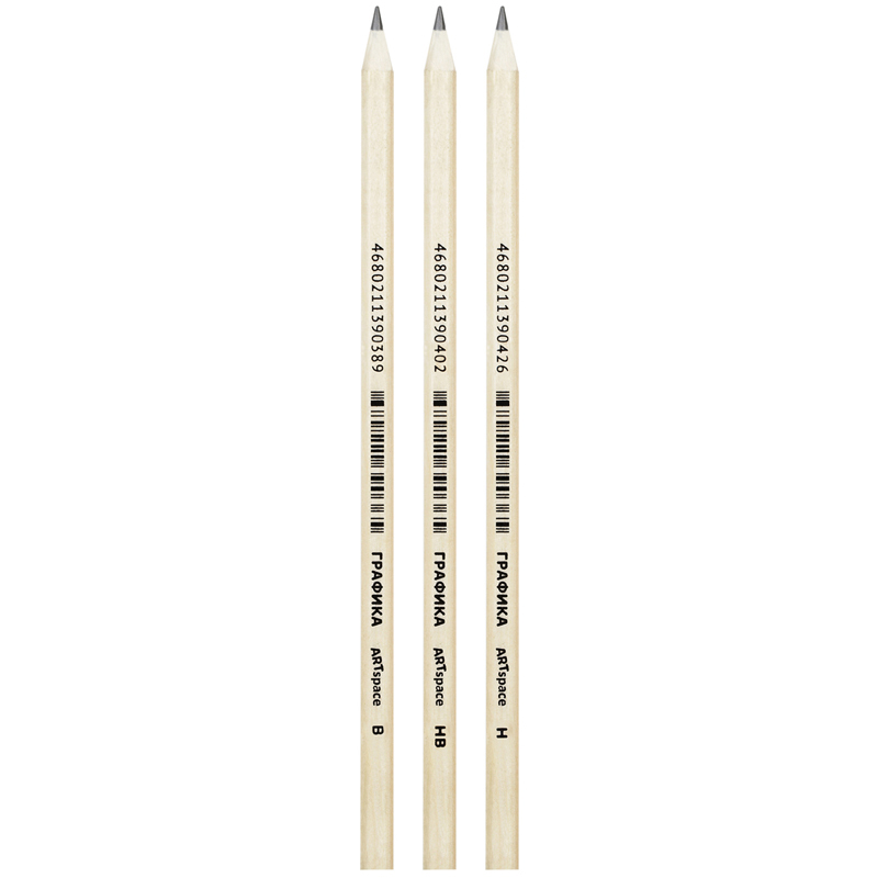 Набор чернографитных карандашей ArtSpace из натурального дерева различной твёрдости: B, HB, H. В наборе 3 карандаша, заточенные, шестигранный корпус. Изделия отлично подходят для выполнения чертёжных, технических, графических и художественных работ. Цвет корпуса – натуральное дерево, упаковка – пакет с европодвесом.<br/>• Количество в наборе: 3;<br/>• Твёрдость: B, HB, H;<br/>• Материал корпуса: дерево;<br/>• Форма корпуса: шестигранная.