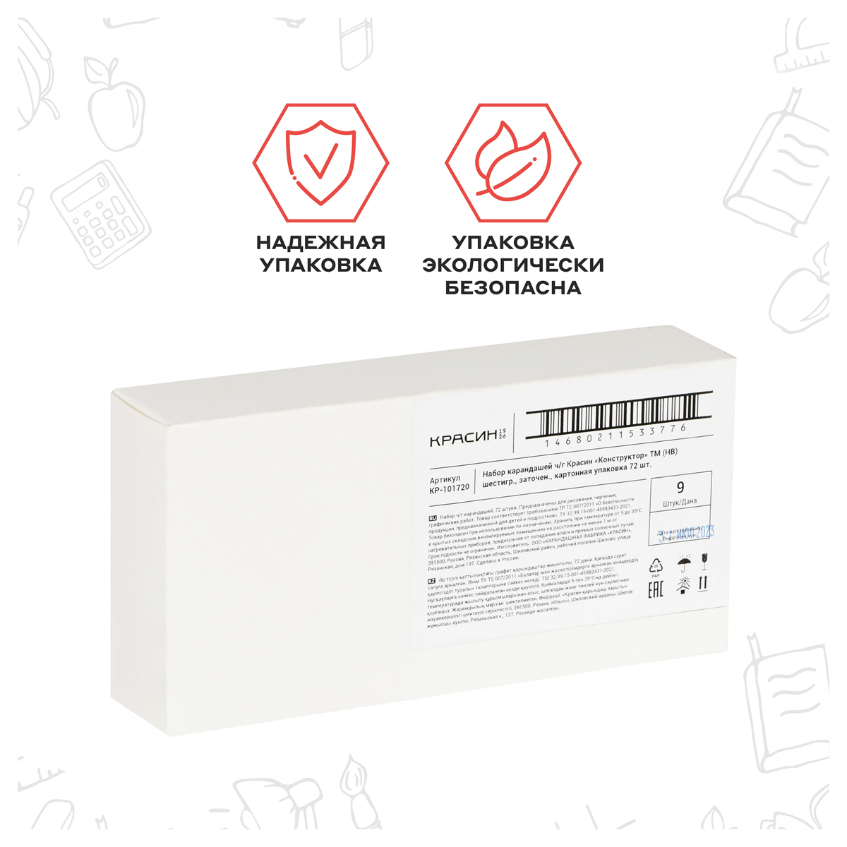 Набор чернографитных карандашей «Красин» серии «Конструктор» – отличный выбор для школьников, студентов, начинающих художников, которые ищут простые и качественные инструменты для письма, рисования, создания чертежей и творчества. Набор простых твердо-мягких (ТМ) карандашей из 72 штук является выгодным решением для дома, школы и офиса. Шестигранный корпус карандашей выполнен из качественной российской древесины липы. Специальная технология увеличивает прочность и надёжность заклейки стержня в карандаше, предохраняя его от повреждений при падении. Высококачественный ударопрочный грифель диаметром 2,2 мм не крошится и не ломается. Карандаши легко и ровно затачиваются, безопасны для детей. Изделия поставляются заточенными, имеют диаметр 7 мм и длину 177 мм. Набор упакован в картонную коробку.<br/>«Конструктор» – безупречное качество даже для самых серьезных профессионалов!<br/>• Твердость: ТМ (HB);<br/>• Заточенный грифель: да;<br/>• Форма корпуса: шестигранная.