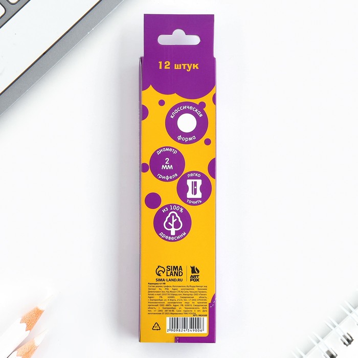 Набор карандашей чернографитных 12 штук, Calligrata Pastel, заточенный, пластик, шестигранный, МИКС