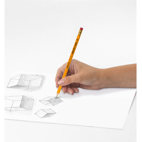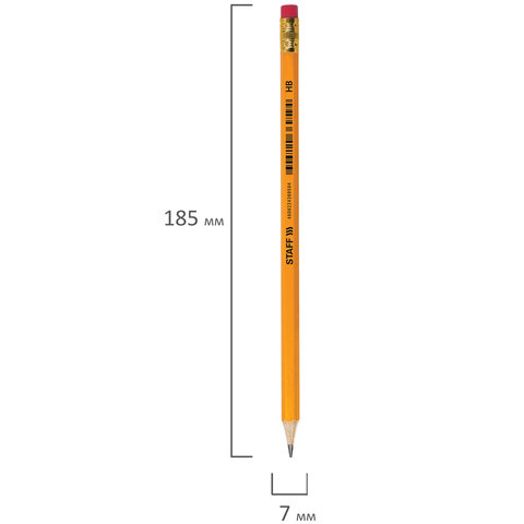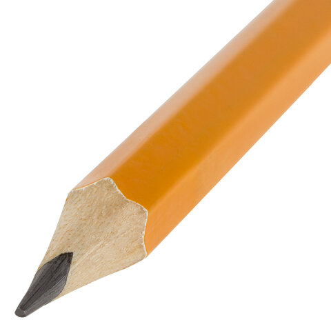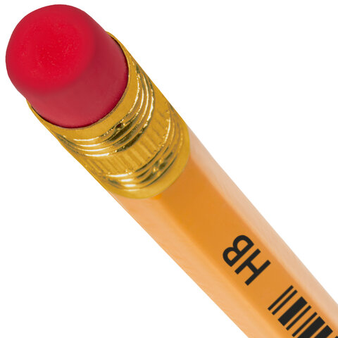 Карандаш изготовлен из прочного пластика. Ластик, расположенный на корпусе, обеспечивает мягкое и чистое стирание. Благодаря шестигранному сечению корпуса карандаш удобен в работе и менее подвержен скатыванию с поверхности стола. Корпус длиной 176 мм легко точится и не крошится, оставляя равномерную стружку. Грифель карандаша обладает средней степенью твердости – HB. Корпус выкрашен в классический жёлтый цвет. Поставляется заточенным.
