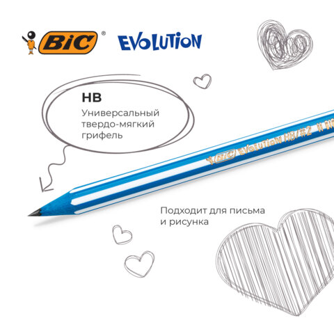 Пластиковые чернографитные карандаши BIC "Evolution" имеют яркий и стильный дизайн.