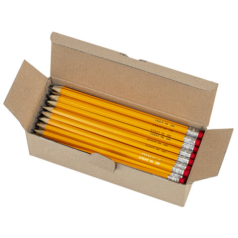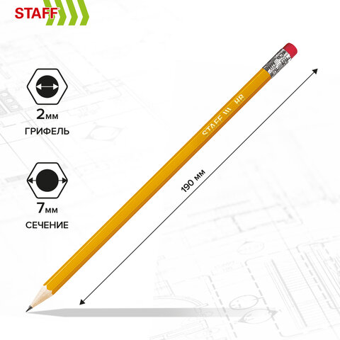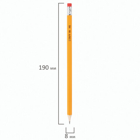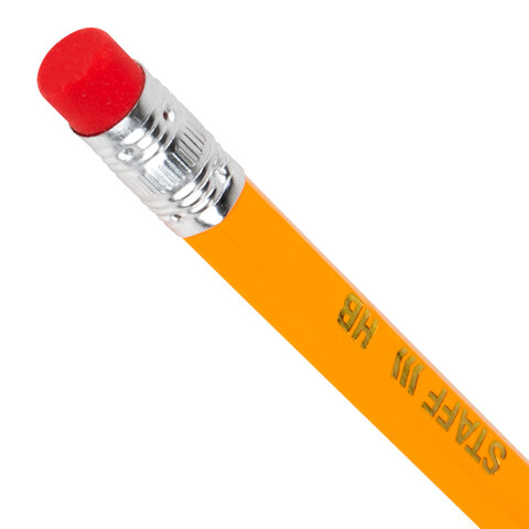 Изготовлены из дерева высокого качества, оснащены ластиком. Имеют шестигранное сечение. Карандаши длиной 190 мм легко точатся и не крошатся. Обладают средней степенью твердости – HB. Выполнены в желтом цвете. Поставляются заточенными.