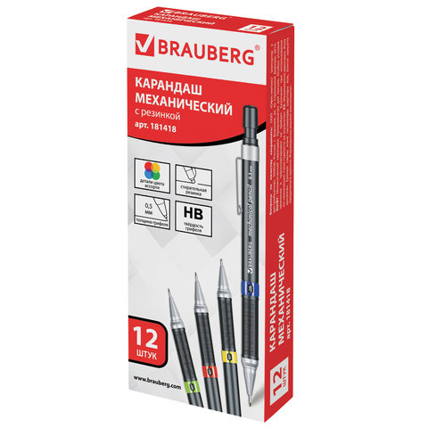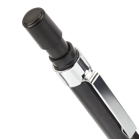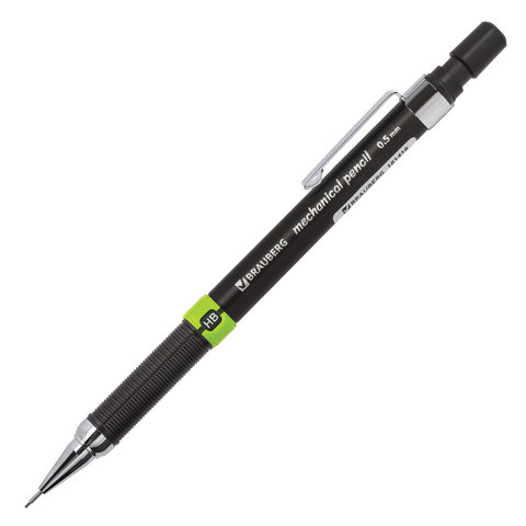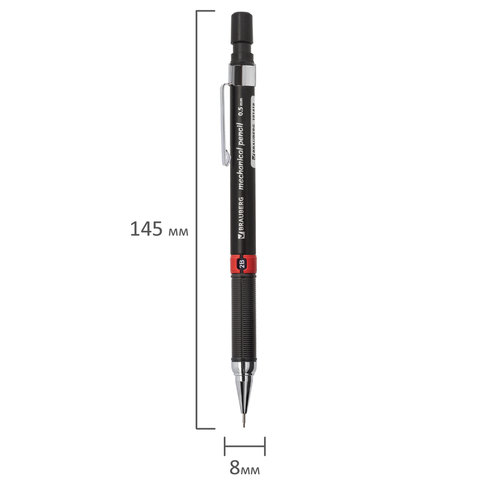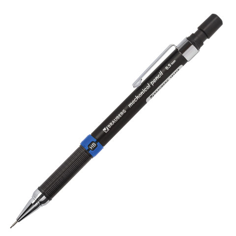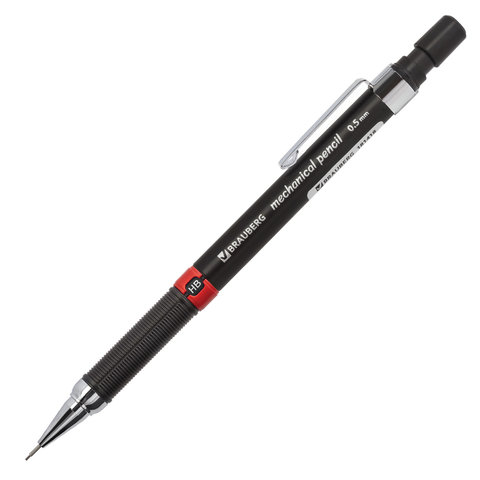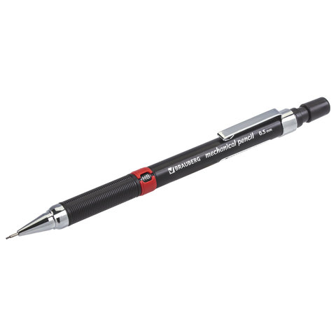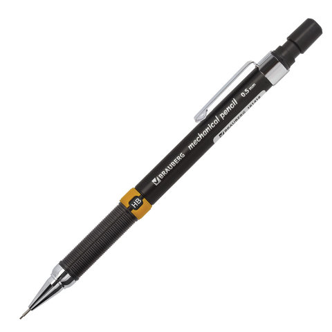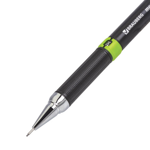 Механический карандаш BRAUBERG с корпусом черного цвета и хромированными деталями. Оснащен передвижным колечком, позволяющим обозначить твердость грифеля внутри.