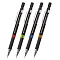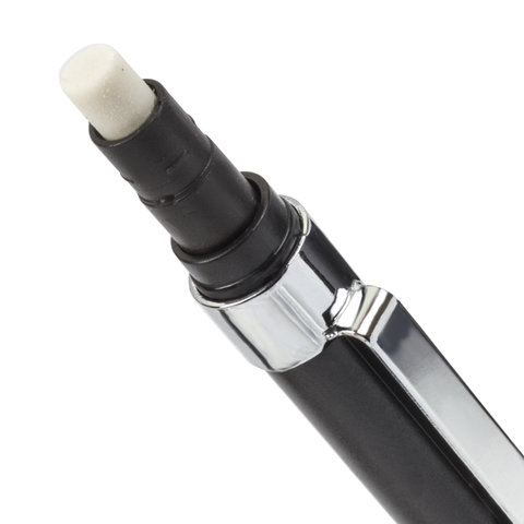 Карандаш с нажимным механизмом заправлен грифелем HB, всегда заточен и готов к работе, дает ровную линию 0,5 мм, а встроенный ластик поможет быстро и легко исправить ошибку. Цанга карандаша убирается внутрь корпуса, поэтому даже на дне сумки или пенала такой карандаш не сломается.