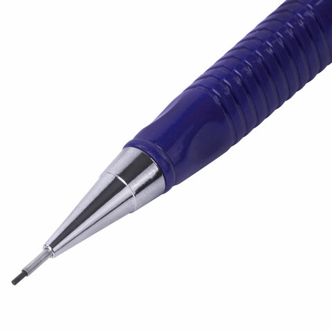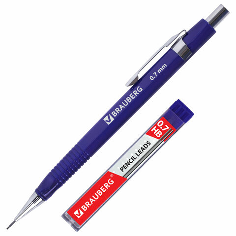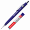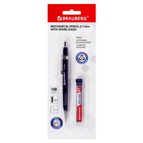 В наборе: механический карандаш c трехгранной эргономичной формой корпуса и антискользящим рифлением в зоне захвата. Имеет металлический клип и ластик. В НАБОР входят 12 запасных грифелей!