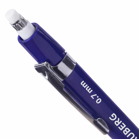 Внутренний механизм выполнен из металла, что обеспечивает карандашу высокую износостойкость. Карандаш с нажимным механизмом заправлен грифелем HB, всегда заточен и готов к работе, дает ровную линию 0,5 мм, а встроенный ластик поможет быстро и легко исправить ошибку. 12 запасных грифелей не позволят прервать ваше письмо в неподходящий момент