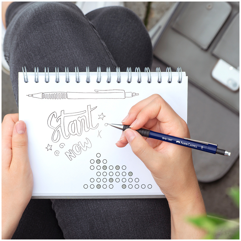 Популярный механический карандаш Grip 1345 от легендарного немецкого производителя Faber-Castell в привлекательном дизайне подходит как для черчения, так и для письма. Корпус карандаша круглый с мягкой прорезиненной комфортной зоной захвата. Прочная жесткая направляющая обеспечивает точный результат при работе с линейками или трафаретами. Убирающийся кончик карандаша обеспечивает безопасную транспортировку. На торцевой части карандаша расположен выдвижной ластик, который мягко стирает и не оставляет разводов. Грифель имеет дополнительную защиту от поломки во время письма благодаря амортизирующей направляющей. Ластик не содержит ПВХ и безопасен для использования. Материал корпуса-пластик