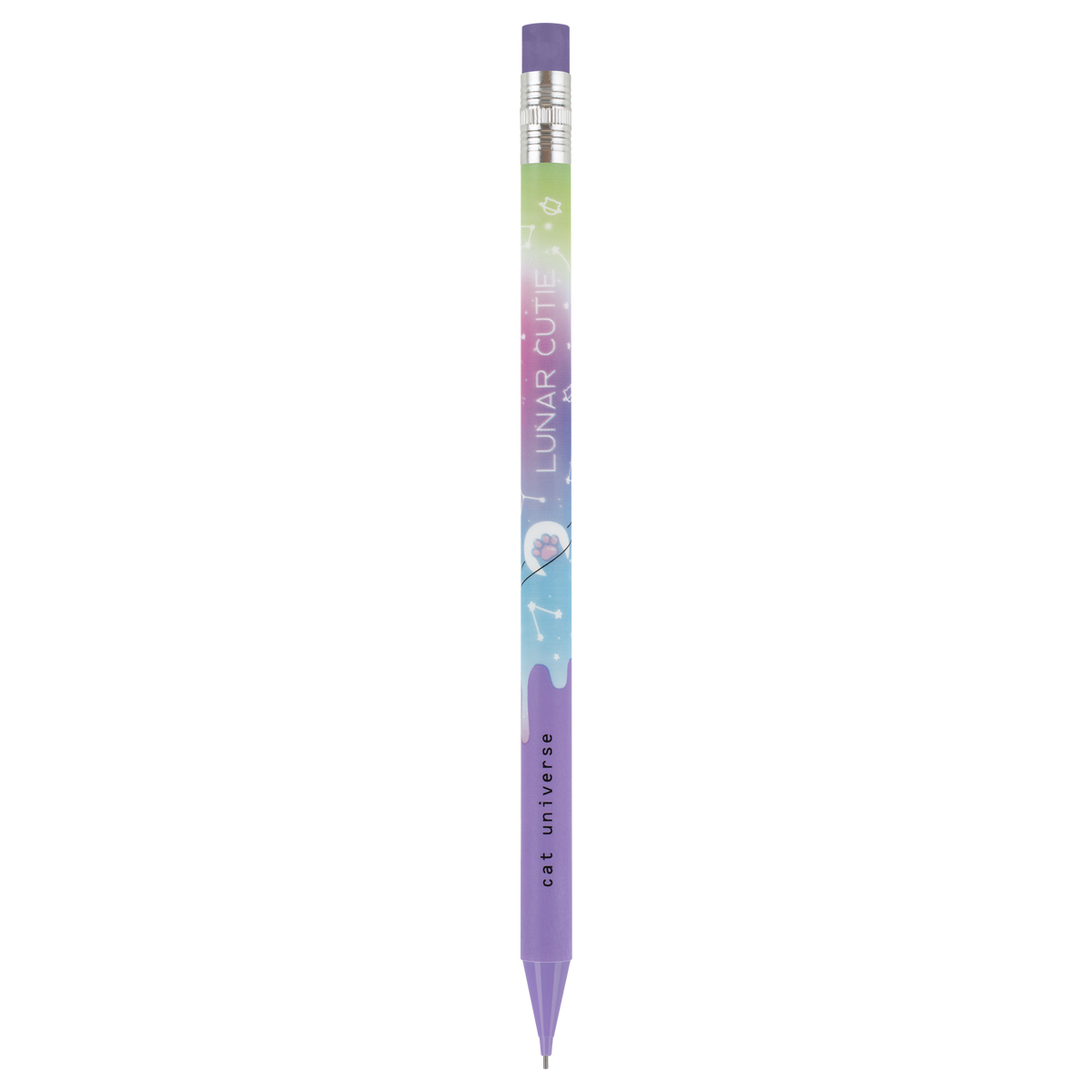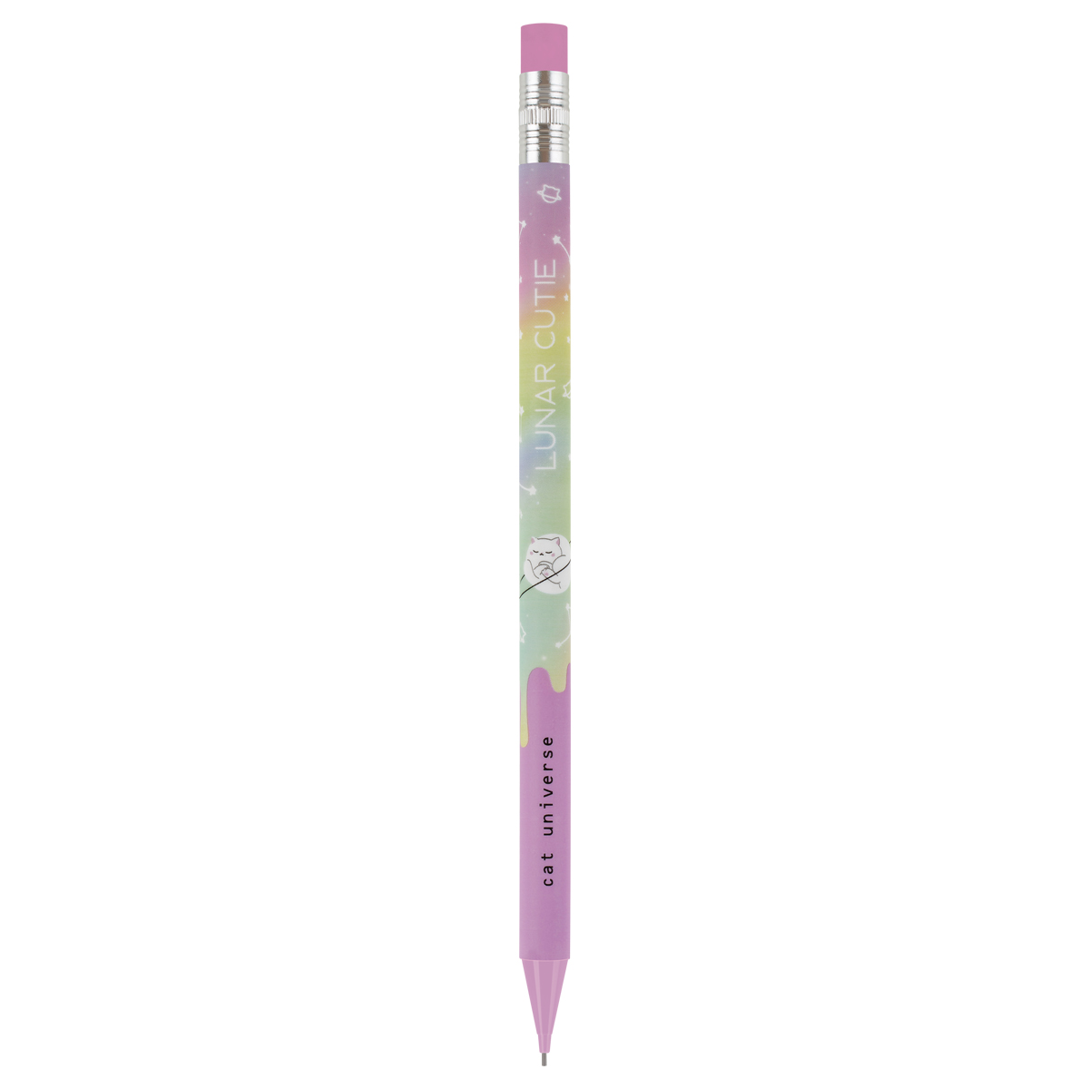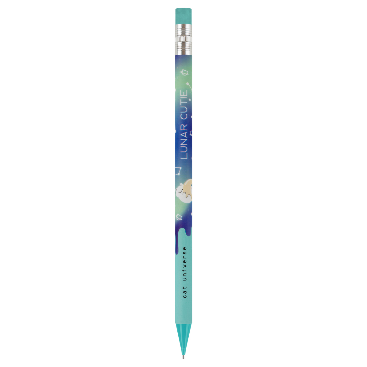 Механические карандаши с печатью на корпусе и ластиком MESHU Cat Universe станут отличными помощниками в школе или офисе. Круглый корпус выполнен в стильных, ярких дизайнах, рисунки нанесены высококачественной термотрансферной печатью. Диаметр грифеля – 0,7 мм, твердость – HB, материал корпуса – пластик. Карандаши упакованы в картонный дисплей-бокс по 18 штук. Подача грифеля осуществляется с помощью кнопочного механизма.