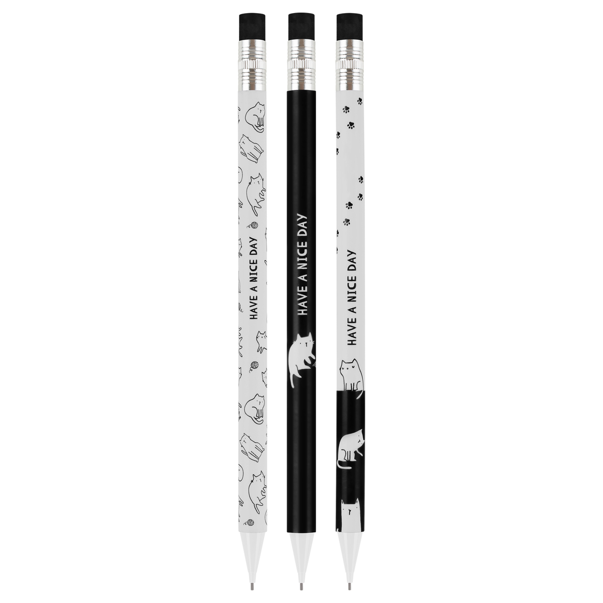 Карандаш механический MESHU "Meowsy", печать на корпусе, с ластиком, 0,7мм, ассорти
