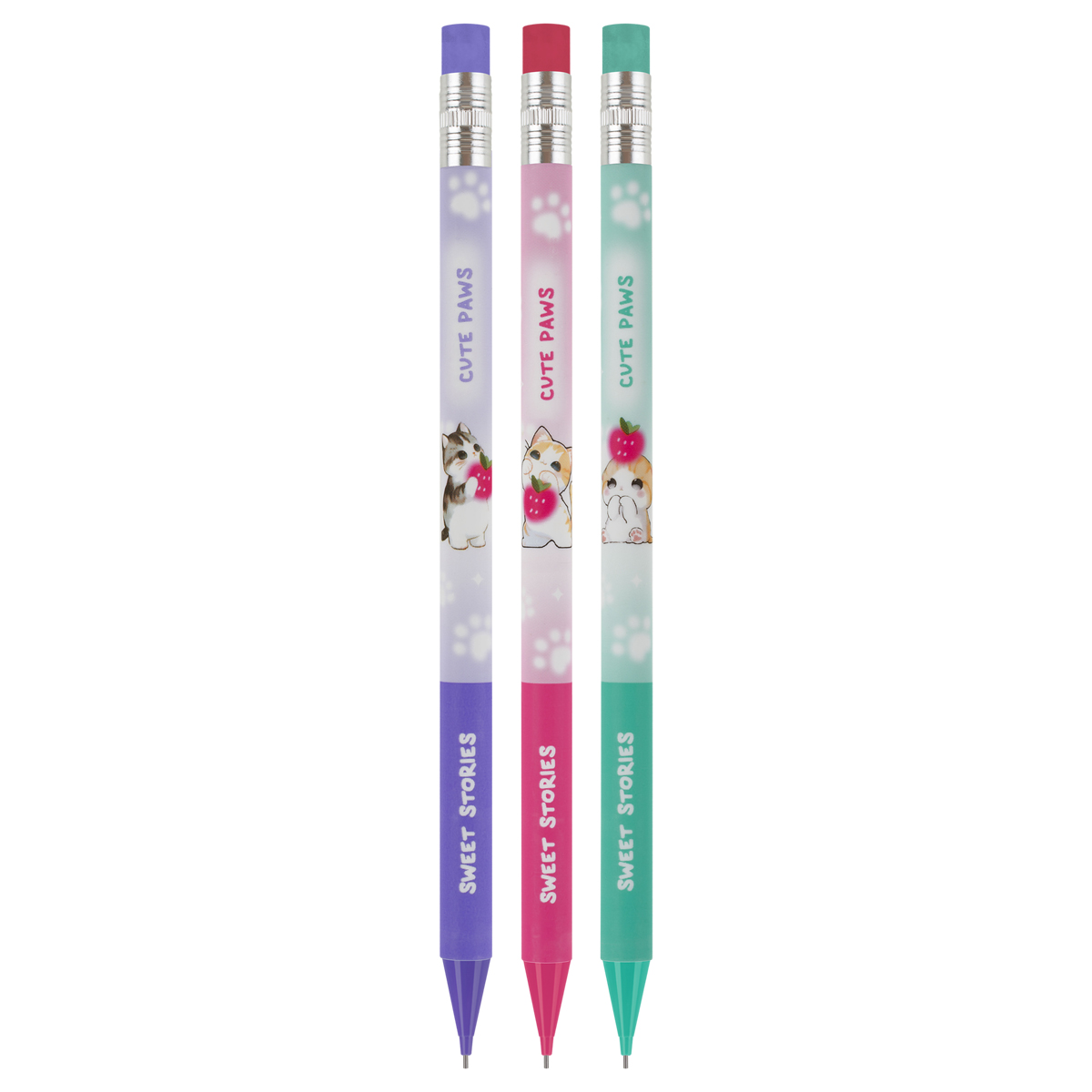 Карандаш механический MESHU "Meowsy", печать на корпусе, с ластиком, 0,7мм, ассорти