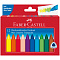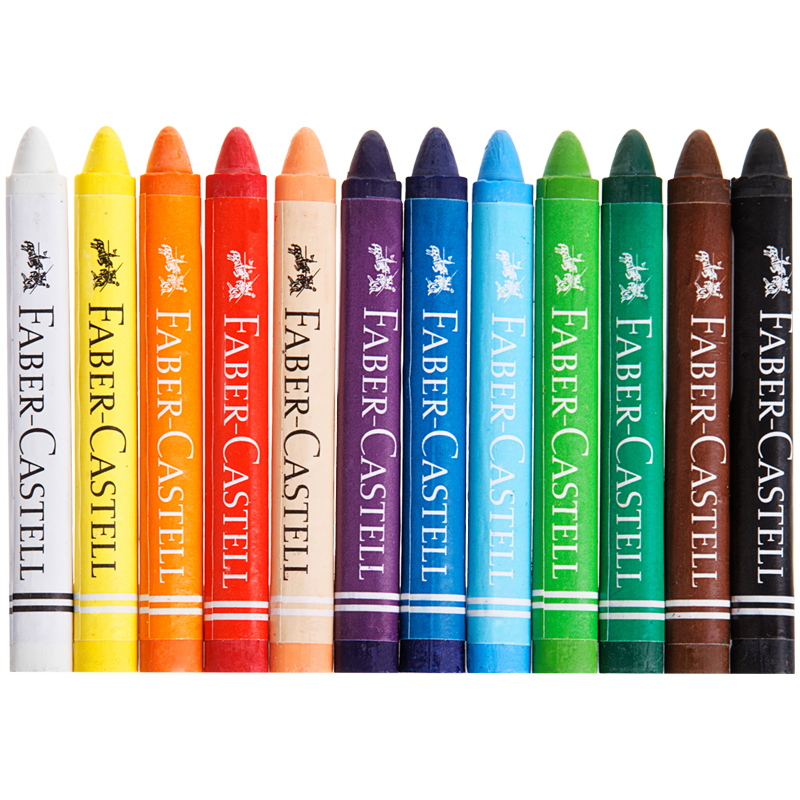 Трёхгранные водостойкие восковые мелки Faber-Castell отлично рисуют на различных поверхностях. В наборе 12 цветов: оранжевый, жёлтый, коричневый, бежевый, синий, красный, зелёный, фиолетовый, светло-зелёный, голубой, чёрный, белый. Каждый мелок имеет бумажную обёртку, которая защищает руки ребёнка от загрязнений в процессе рисования. Одинаково хорошо подходят для левшей и правшей.<br/>Упакованы в яркую картонную коробку с европодвесом.<br/>• Количество цветов: 12