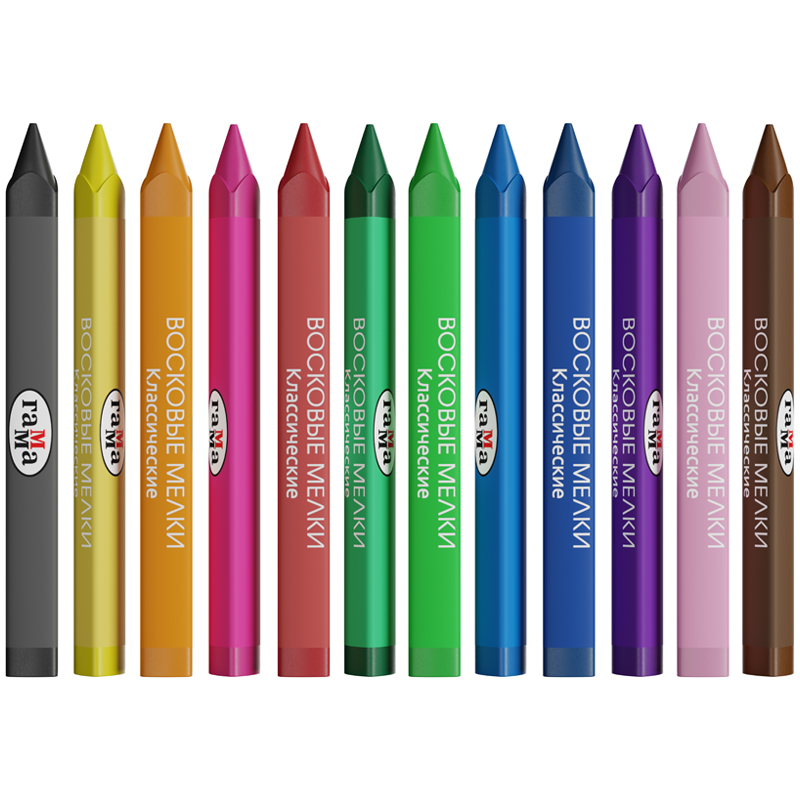 Набор из 12 восковых мелков ГАММА серии «Классическая» отлично подойдёт для рисования на бумаге, картоне и любой шероховатой поверхности. Мелки имеют эргономичную трёхгранную форму, длина мелка составляет 90 мм, а диаметр корпуса — 8 мм. В наборе 12 ярких цветов: жёлтый, зелёный, синий, красный, чёрный, коричневый, оранжевый, розовый, бледно-розовый, фиолетовый, голубой, жёлто-зелёный. Они идеальны для первых начинаний ребенка в рисовании и раскрашивании, так как они удобно лежат в руке. Мелки производятся на основе натуральных растительных компонентов: воска и естественных пищевых красителей. Мелки не пачкают руки, не липнут, не имеют выраженного химического запаха. Каждый мелок обёрнут в бумажную гильзу и уже заточен.