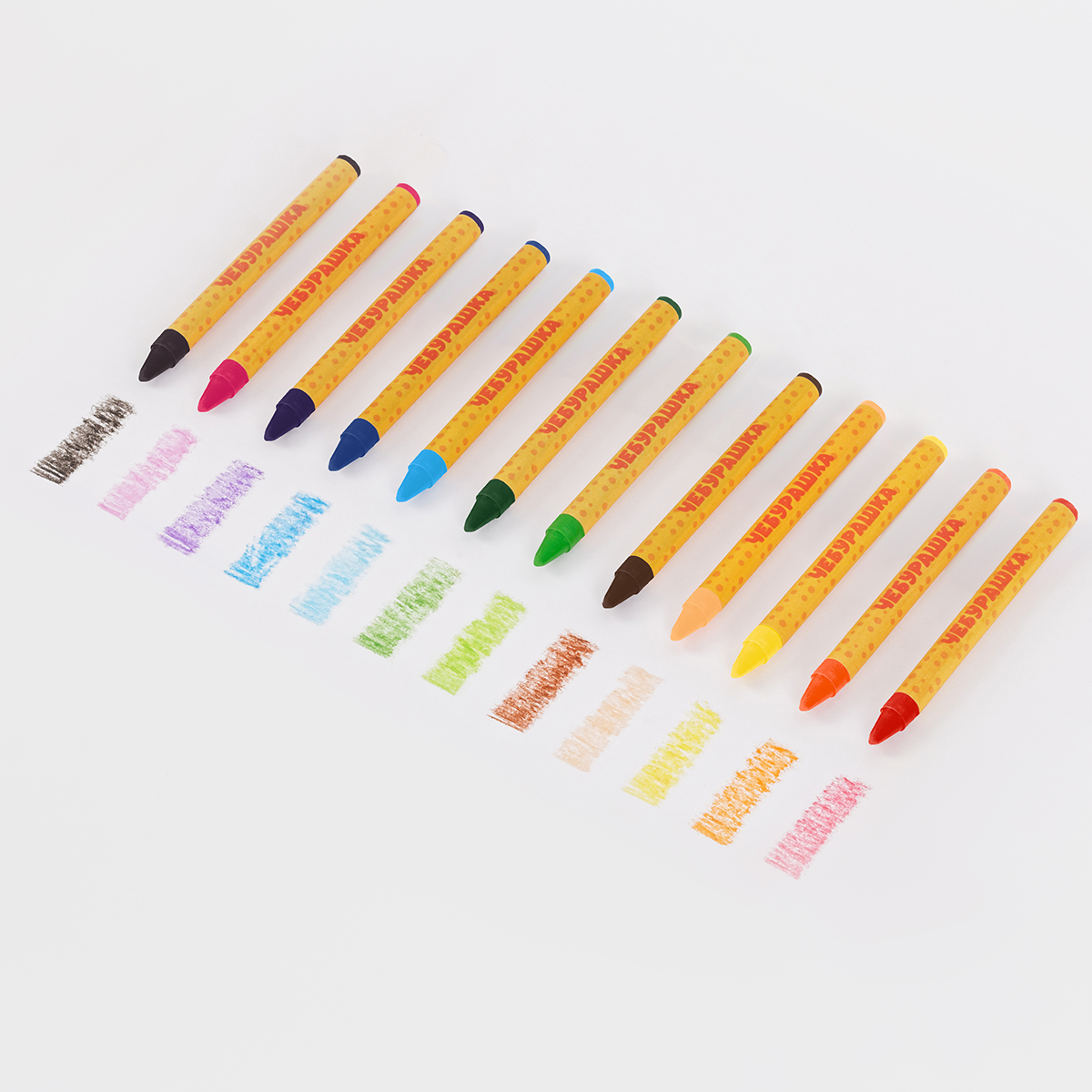 Набор из 12 круглых восковых мелков «Мульти-Пульти» эксклюзивной серии «Чебурашка» отлично подходит для воплощения смелых творческих идей. Он включает в себя 12 ярких цветов: жёлтый, зелёный, синий, красный, чёрный, коричневый, оранжевый, светло-коричневый, голубой, светло-зелёный, тёмно-синий и фиолетовый.