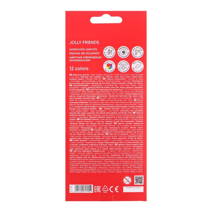 Карандаши акварельные 24 цвета, в картонной коробке, треугольные, дер,с кис,Животные МИКС