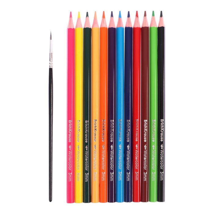 Карандаши акварельные 12 цветов, в картонной коробке, треугольные,дер, с кист,Животные МИКС