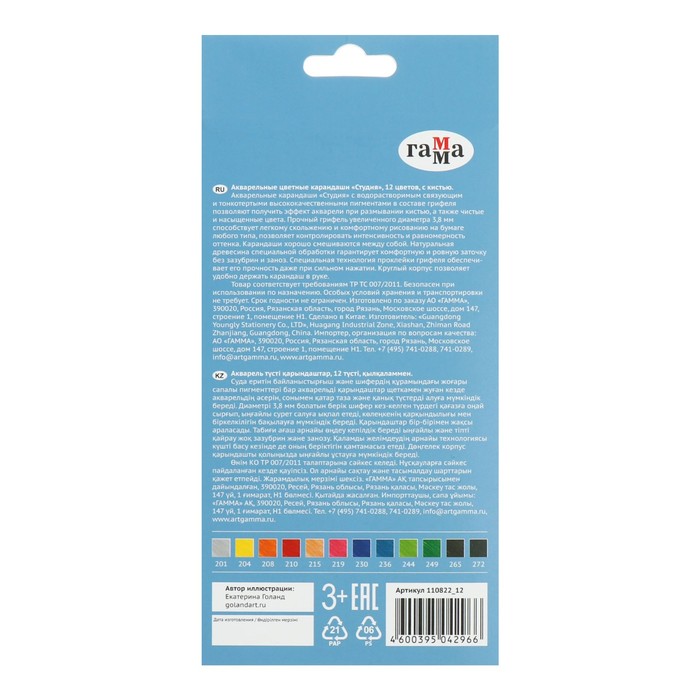 Карандаши акварельные Гамма "Студия" 24 цвета, грифель 3.8 мм, картонная коробка, 110822_24