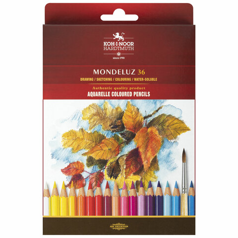 Карандаши цветные акварельные художественные KOH-I-NOOR "Mondeluz", 36 цветов, 3,8 мм, заточенные, европодвес, 3719036001KZRU