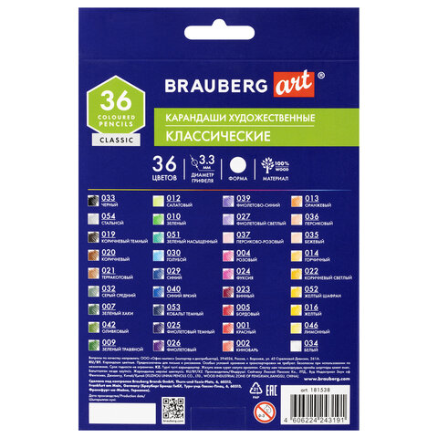Цветные художественные карандаши BRAUBERG ART CLASSIC отличаются мягким грифелем высокого качества, который позволяет достичь насыщенности и равномерности цвета. Цвета хорошо смешиваются между собой, растушёвываются и накладываются друг на друга.
