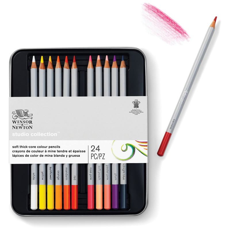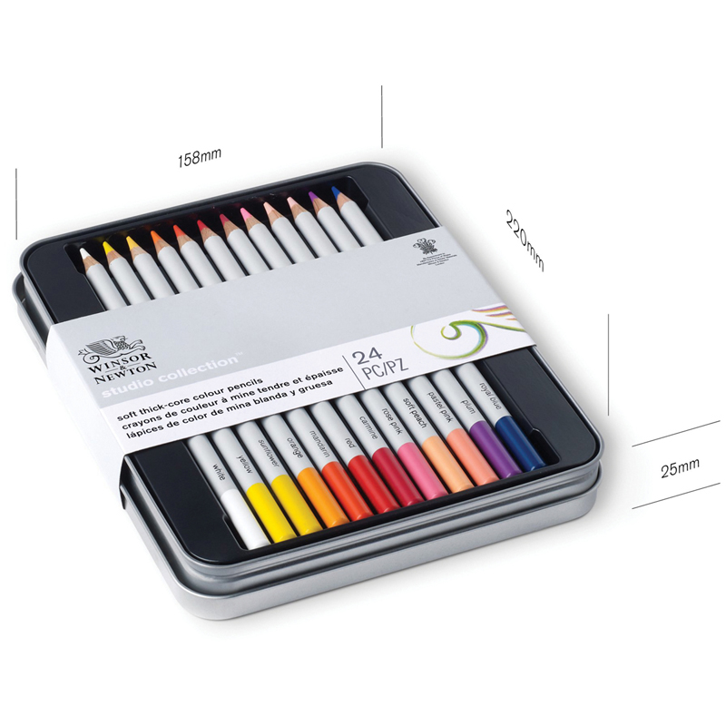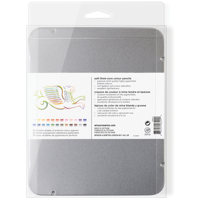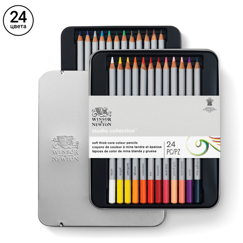 Карандаши Winsor&Newton- это карандаши высокого качества с прочным грифелем. Наборы тщательно подобраны по цветам и типам карандашей. Стильная металлическая упаковка идеально подходит для использования в дороге. Упаковка из 100% перерабатываемого материала. Карандаши видны благодаря прозрачной упаковке. В набор входит 24 цветных карандаша в металлическом пенале.