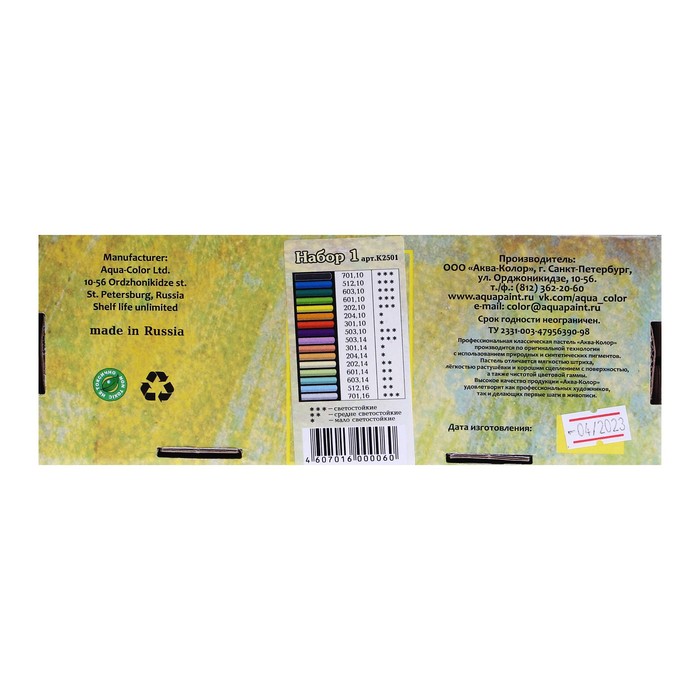 Пастель сухая, набор 60 цветов, Колер "Петербургская", D-8.5мм /L-60 мм, художественная
