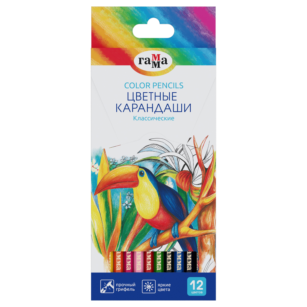 Карандаши цветные Гамма "Классические", 12цв., заточен., картон. упак., европодвес