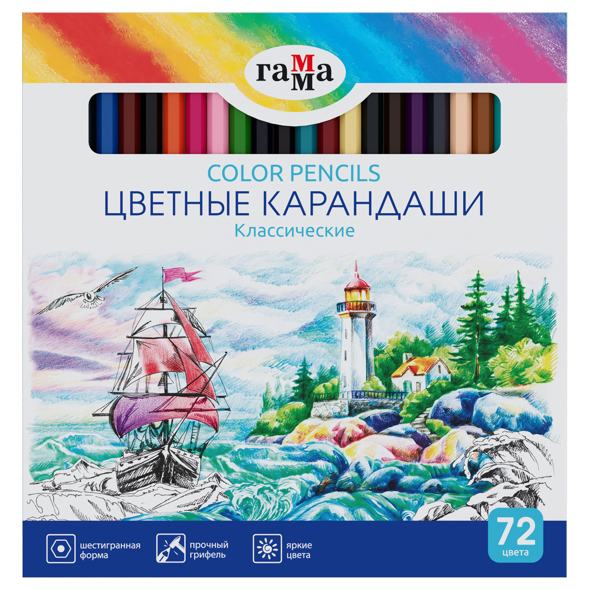 Карандаши цветные Гамма "Классические", 72цв., заточенные, картон. упак., европодвес