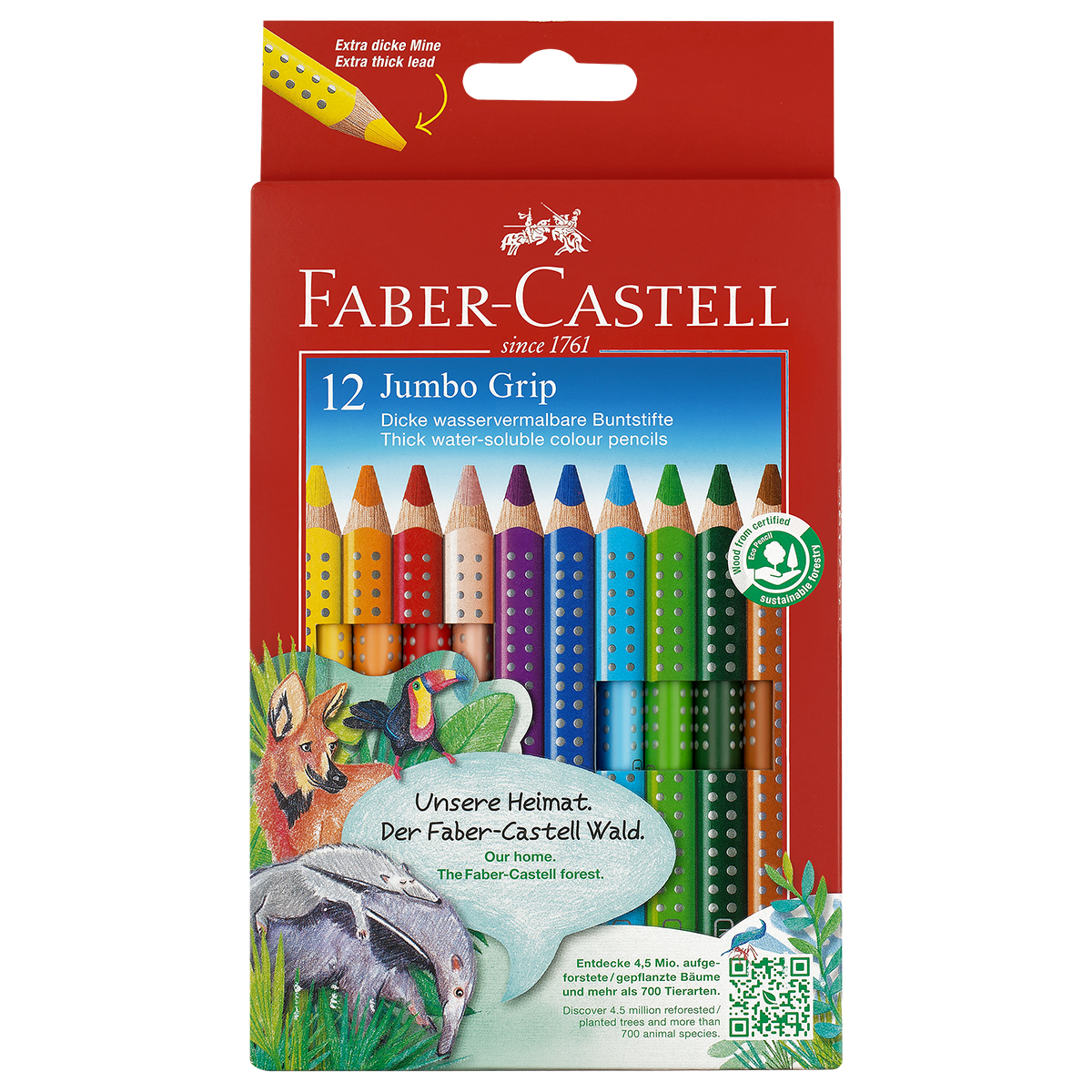 УЦЕНКА - Карандаши цветные Faber-Castell "Jumbo Grip", 12цв., трехгран., утолщен., заточен., картон, европодв