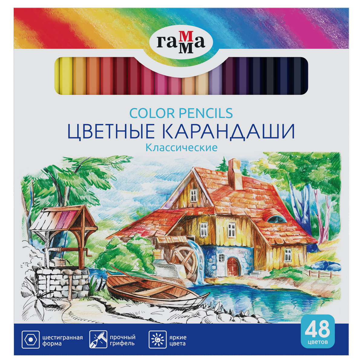 Карандаши цветные Гамма "Классические", 48цв., заточенные, картон. упак., европодвес