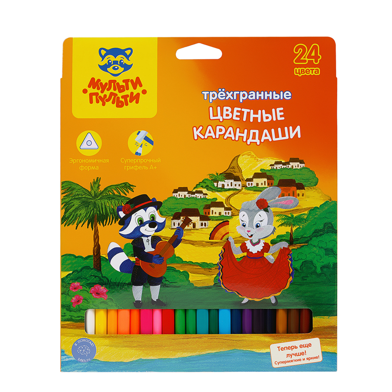 УЦЕНКА - Карандаши цветные Мульти-Пульти "Енот в Испании", 24цв., трехгран., заточен., картон, европодвес